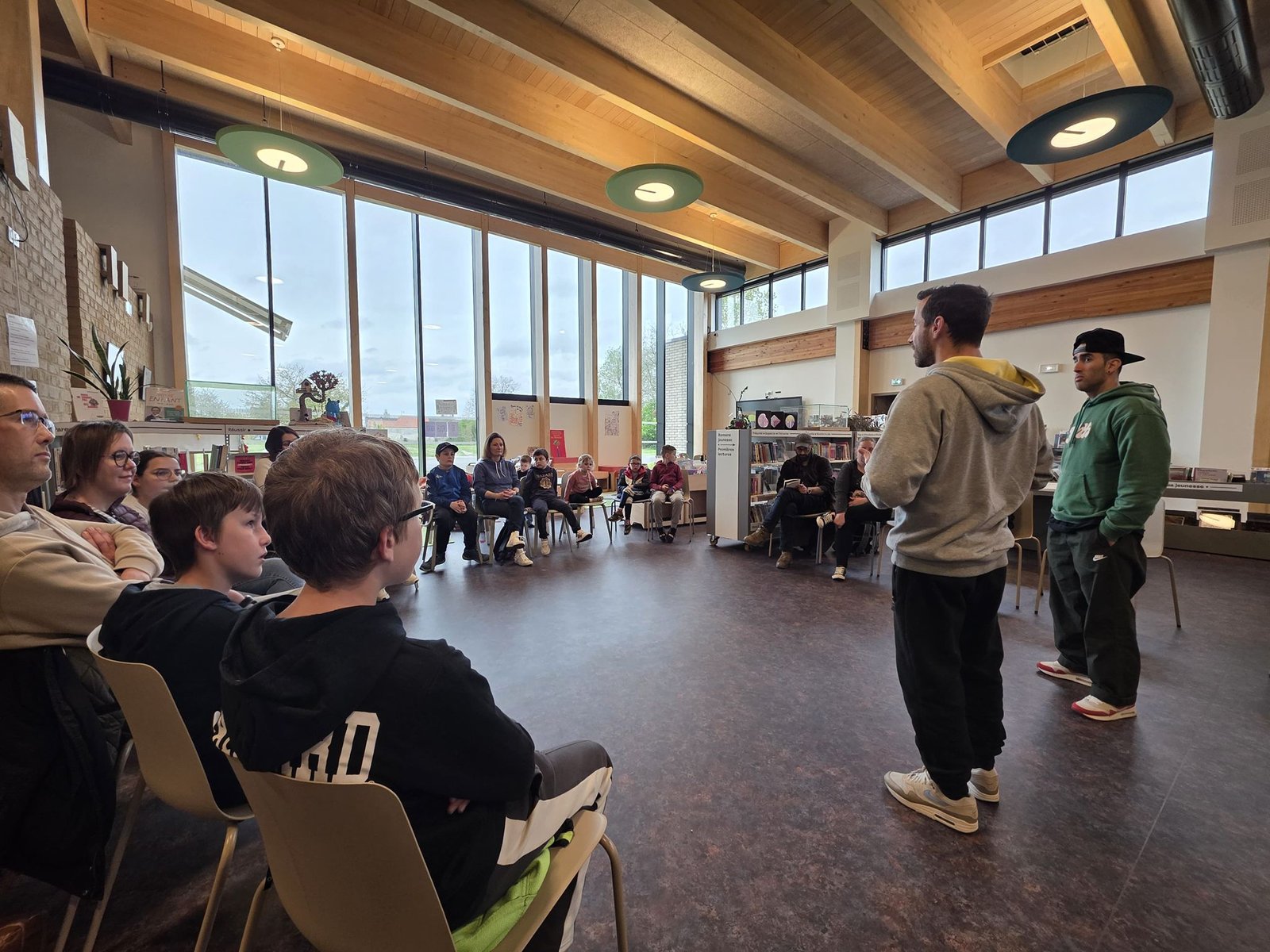 Des ateliers ont lieu également auprès des jeunes dans les bibliothèques ainsi que des extraits dansés (les deux chorégraphes ont présenté à la Bibliothèque de Sissonne « le Grain de Sel », dans le cadre de la Nuit des Lectures, un extrait de leur pièce en duo « Après out », succès du Festival OFF Avignon 2025).